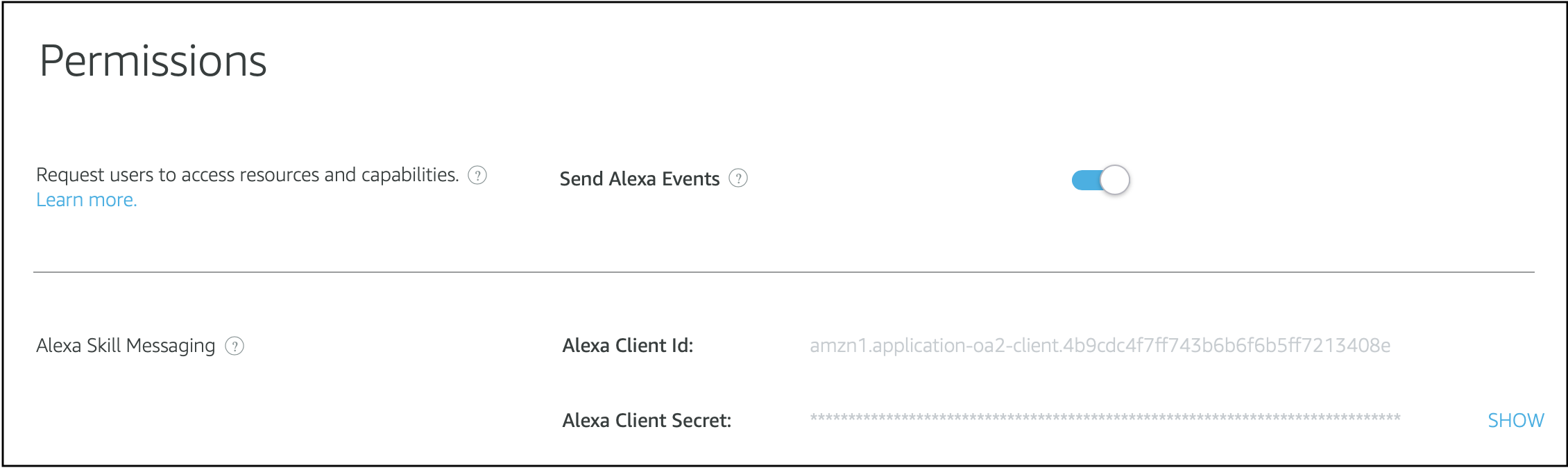 Alexa Skills: Enabling Alexa asynchronous messaging and getting Alexa messaging client details