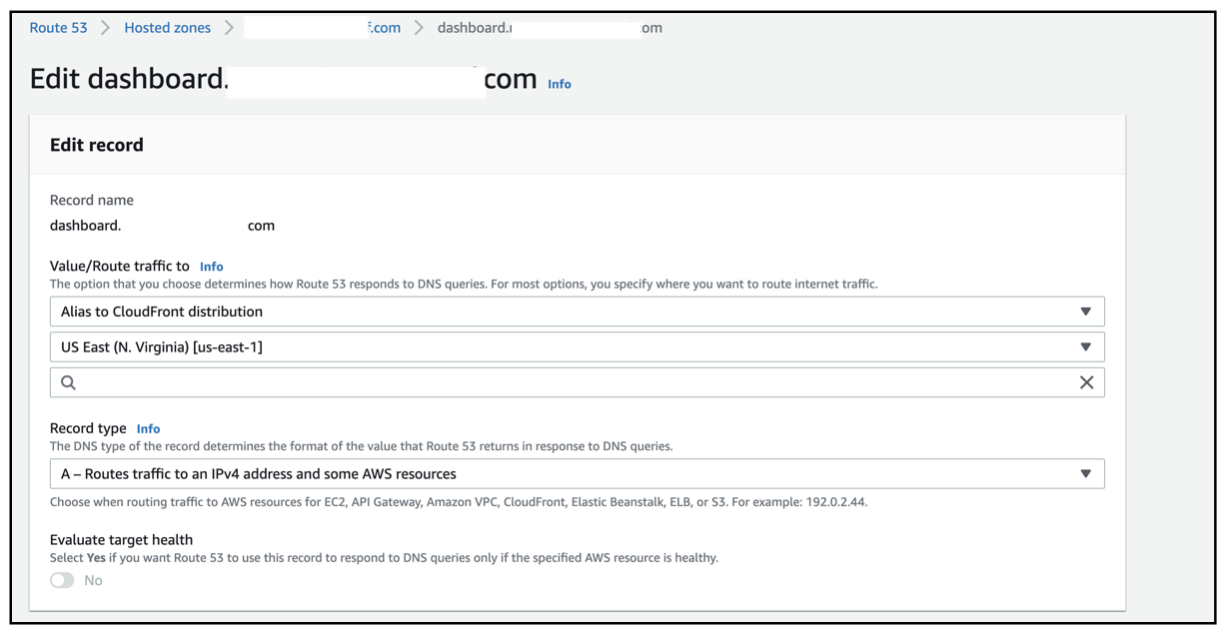 The following is the Route 53 screen you'll see when setting up a CloudFront distribution: