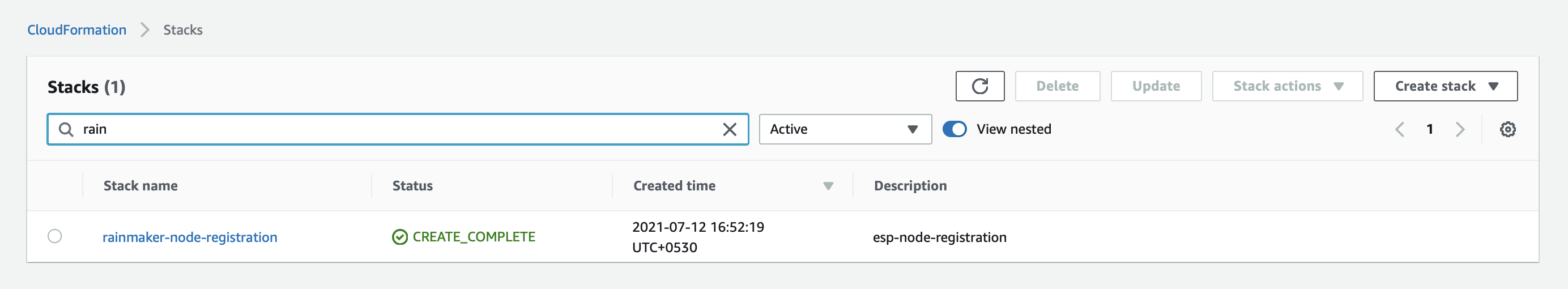 CloudFormationservice. - Ensure that you are selecting the same region where RainMaker deployed.