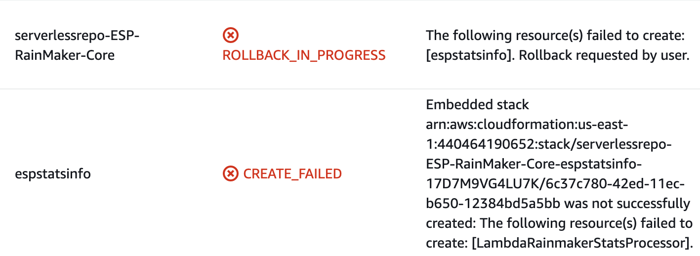 CloudFormation,然后选择serverlessrepo-ESP-RainMaker-Core。 -