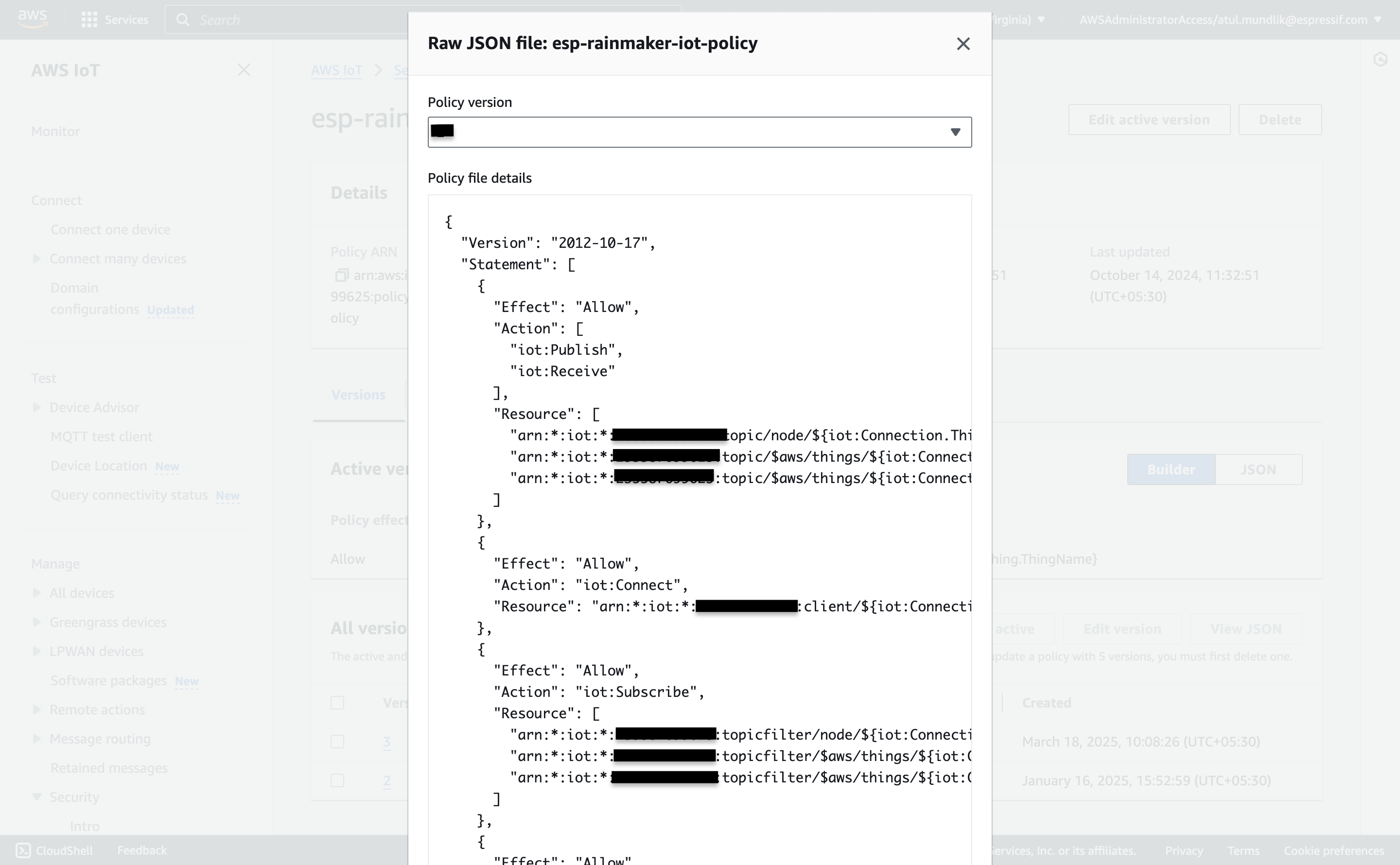 - 如果你需要清理并重新部署 RainMaker,请联系 Espressif RainMaker 团队申请访问权限,邮箱地址为 esp-rainmaker-support@espressif.com。