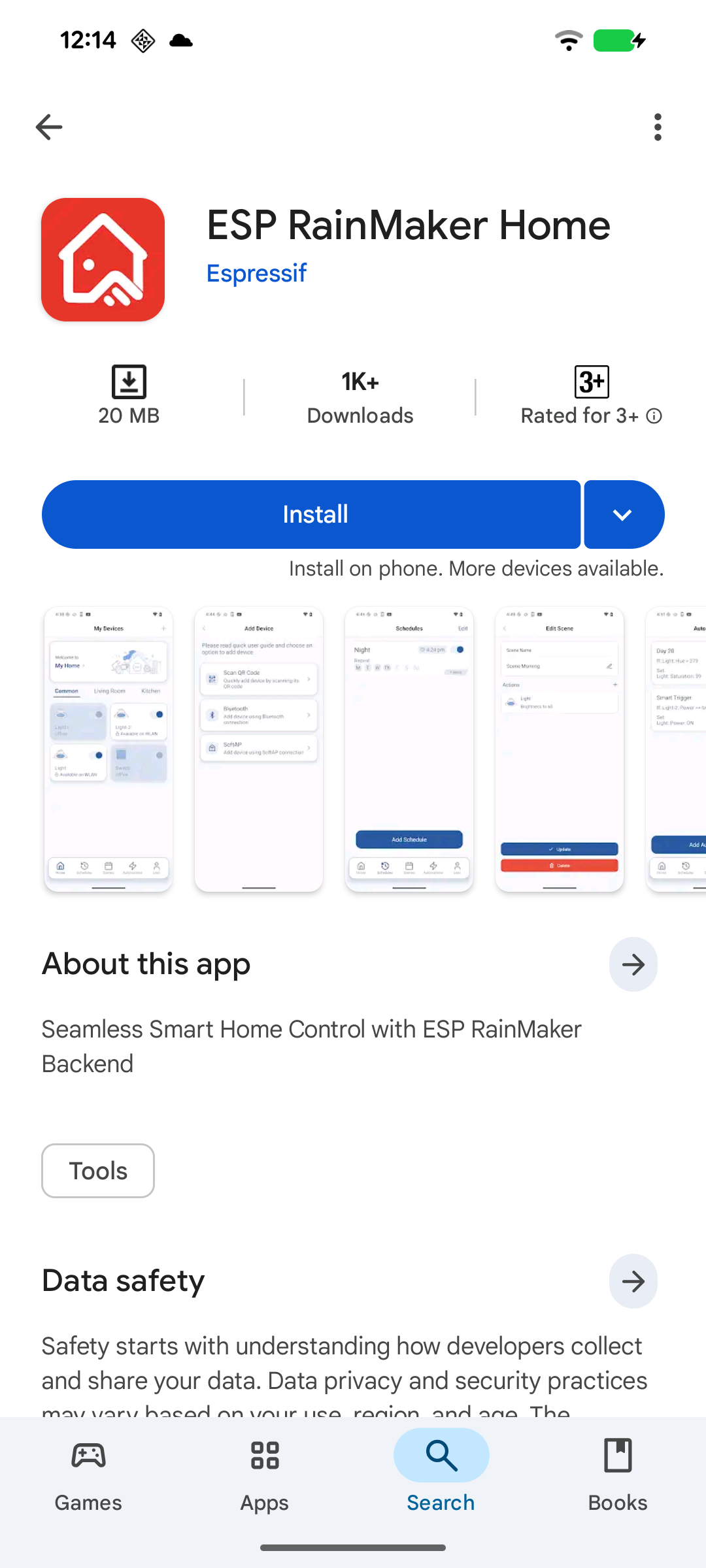 Open Google Play or App Store on your phone, search for ESP RainMaker Home, and download it. Here are the links for quick reference: