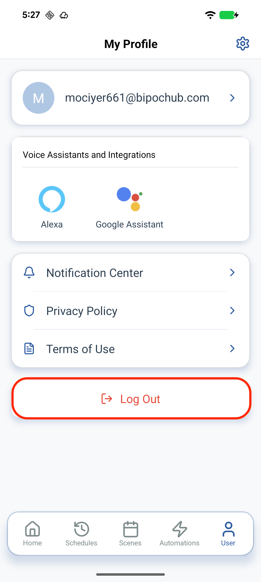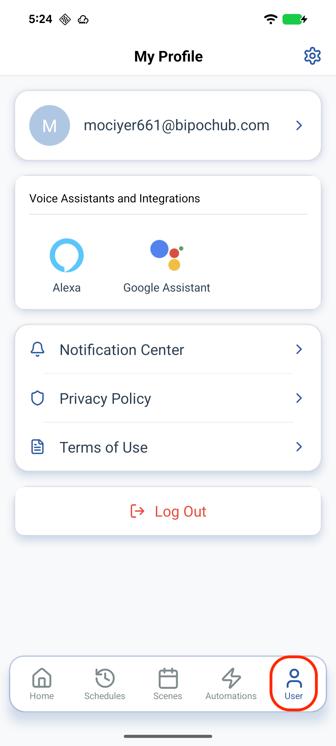 Usertab in the bottom navigation. - Scroll down and tap the red "Log Out" button.