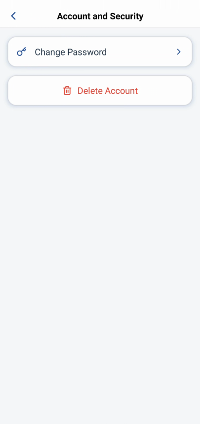 Usertab → Profile picture or Settings icon (⚙️) →Account and Security→Change Password. - Enter your current password, new password, and confirm new password.