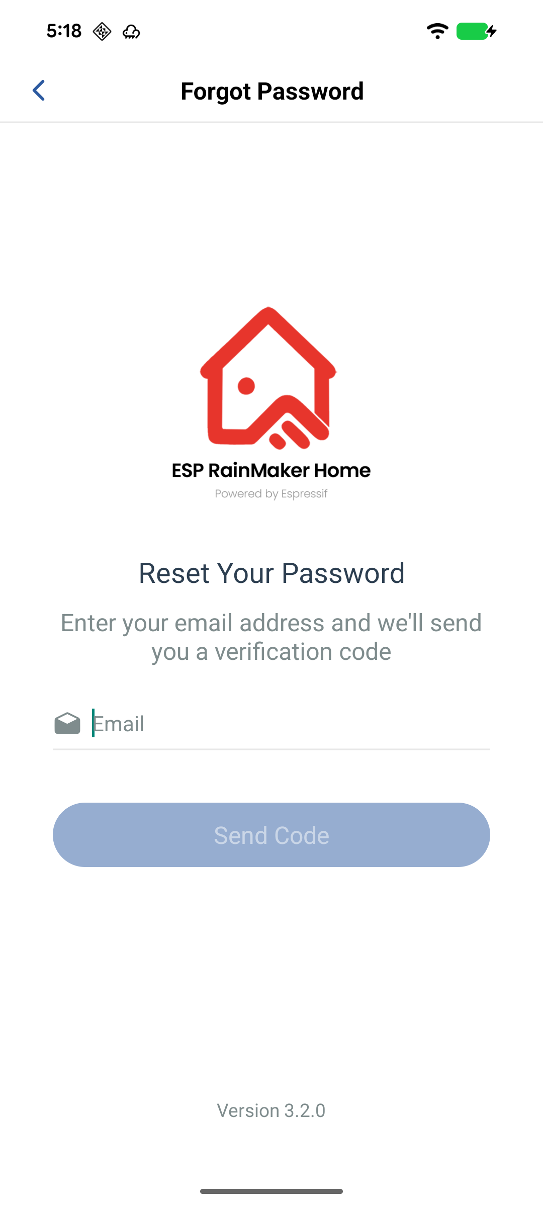 - Enter your registered email address and tap "Send Code".
